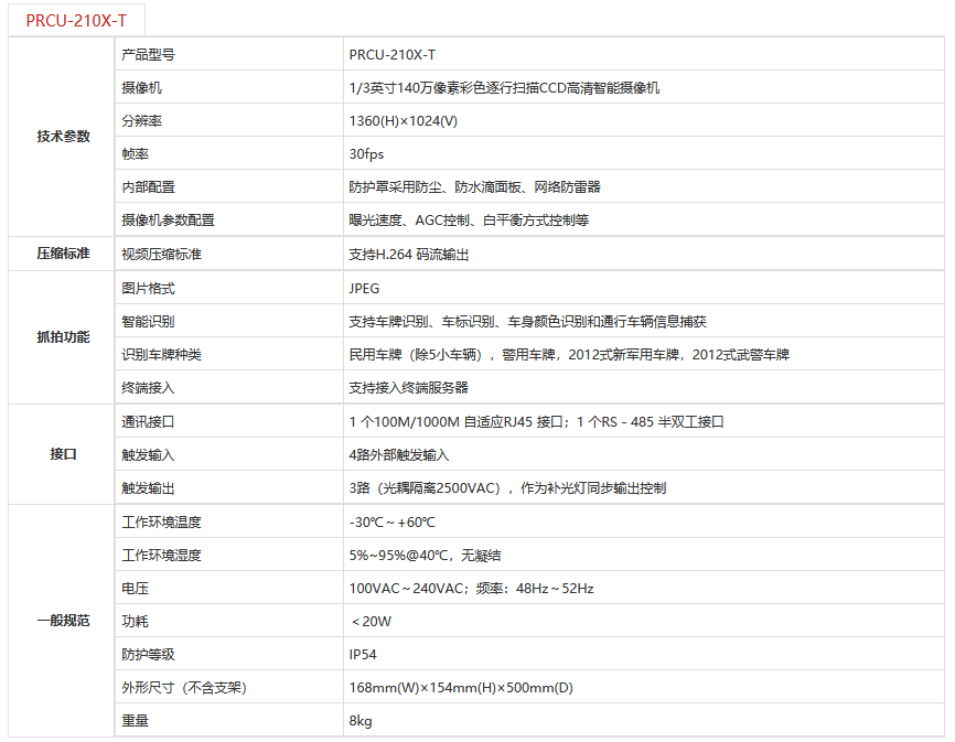 牌识抓拍单元PRCU-210X-T